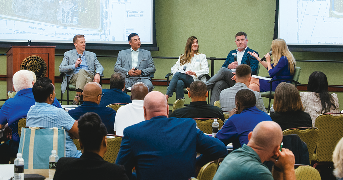 NTBC president and CEO Hope Kennedy led the panel discussion that included Justin Olsen, the chief operating officer and Dr. Joseph Perno, the VP of Medical Affairs of Johns Hopkins All Childrenās Hospital, as well as HKS Architects partner Teresa Campbell, and Bryan Durkin, the operations manager from Robins & Morton, which is building the 230,000-sq.- ft., 56-bed hospital at the northwest corner of Overpass Rd. and McKendree Rd.