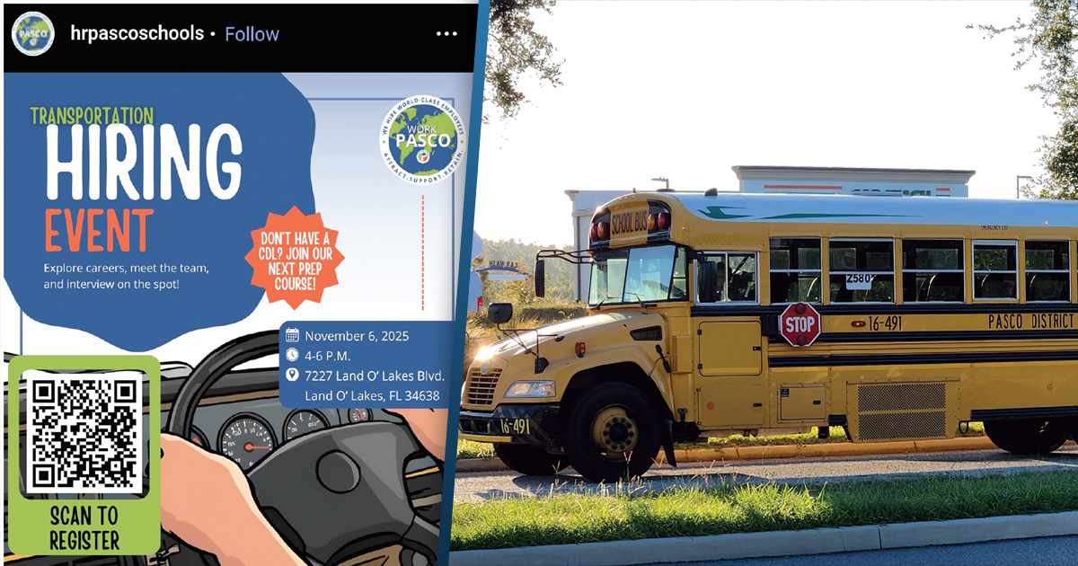 The District has organized multiple hiring events, some upcoming, to try to recruit drivers. The next one will be on Thursday, November 6, 4 p.m.-6 p.m., at the District Office (7227 Land OâLakes Blvd., Land Oâ Lakes, FL 34638).
