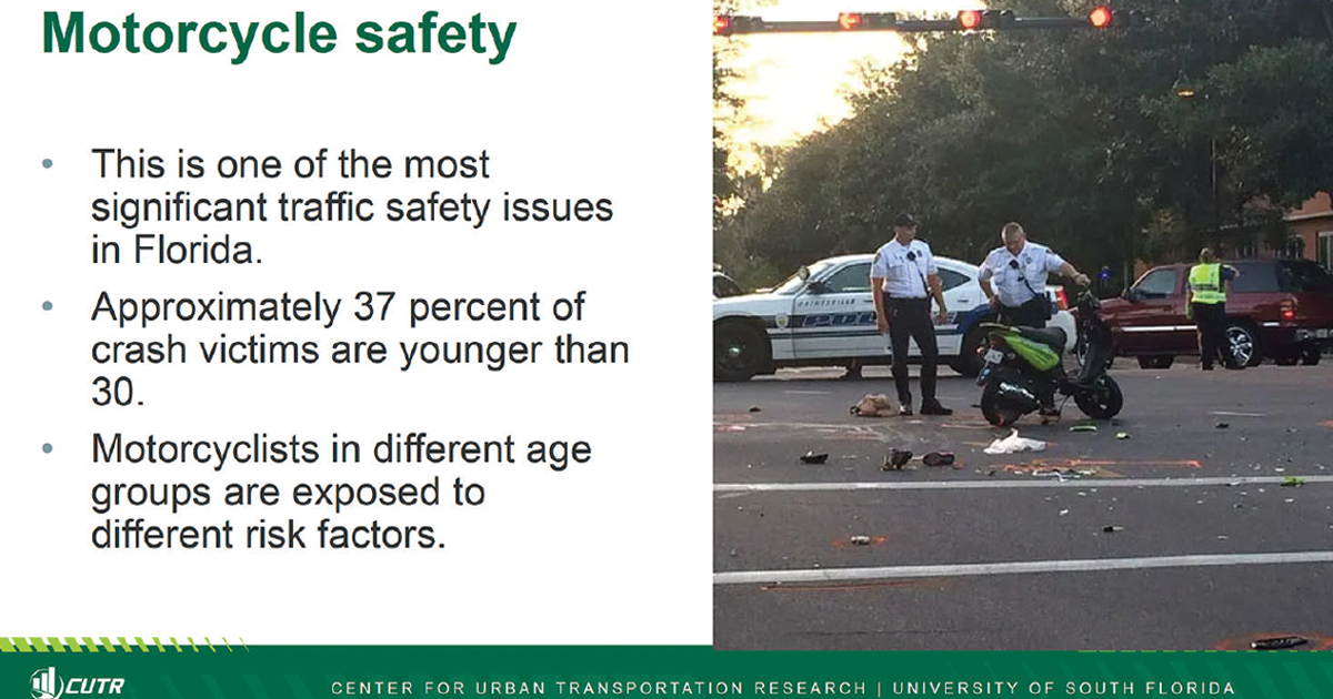Dr. Chanyoung Lee (photo), the program director of motorcycle injury prevention and senior research associate at the Center for Urban Transportation Research (aka CUTR) in the College of Engineering at the University of South Florida, shared some of the data he has gathered from fatal motorcycle crashes that shows everything from the awge groups most likely to be involved in a fatal crash to the other factors (speeding, helmet use, intoxication, who was deemed at fault by law enforcement, etc.).