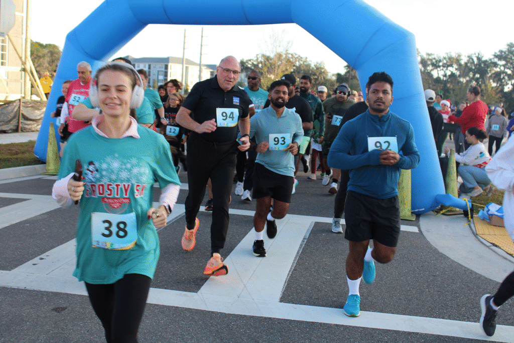 Prior to its “Avalon Aglow ” event on Saturday, December 13, Downtown Avalon Park Wesley Chapel  and ISI Elite Training hosted the “Frosty 5K” run through the streets of the Avalon Park community. Fun was had by all, including Avalon Park developer Beat Kahli.