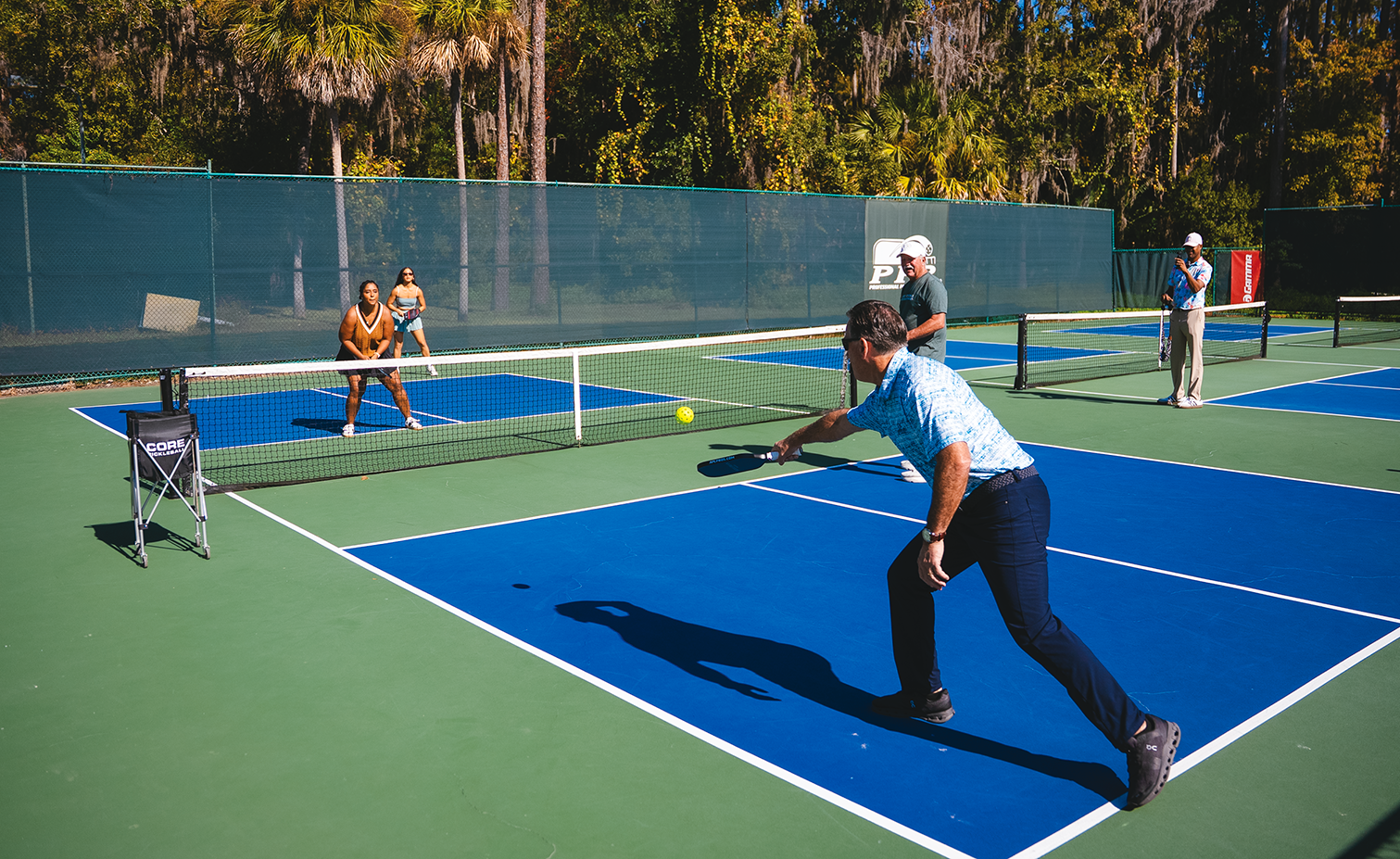 Commissioner Mariano also participated in a pickleball clinic (he’s shown returning the ball in the photo below), which allowed Media Day participants to check out the eight gorgeous new pickleball courts for themselves.Â