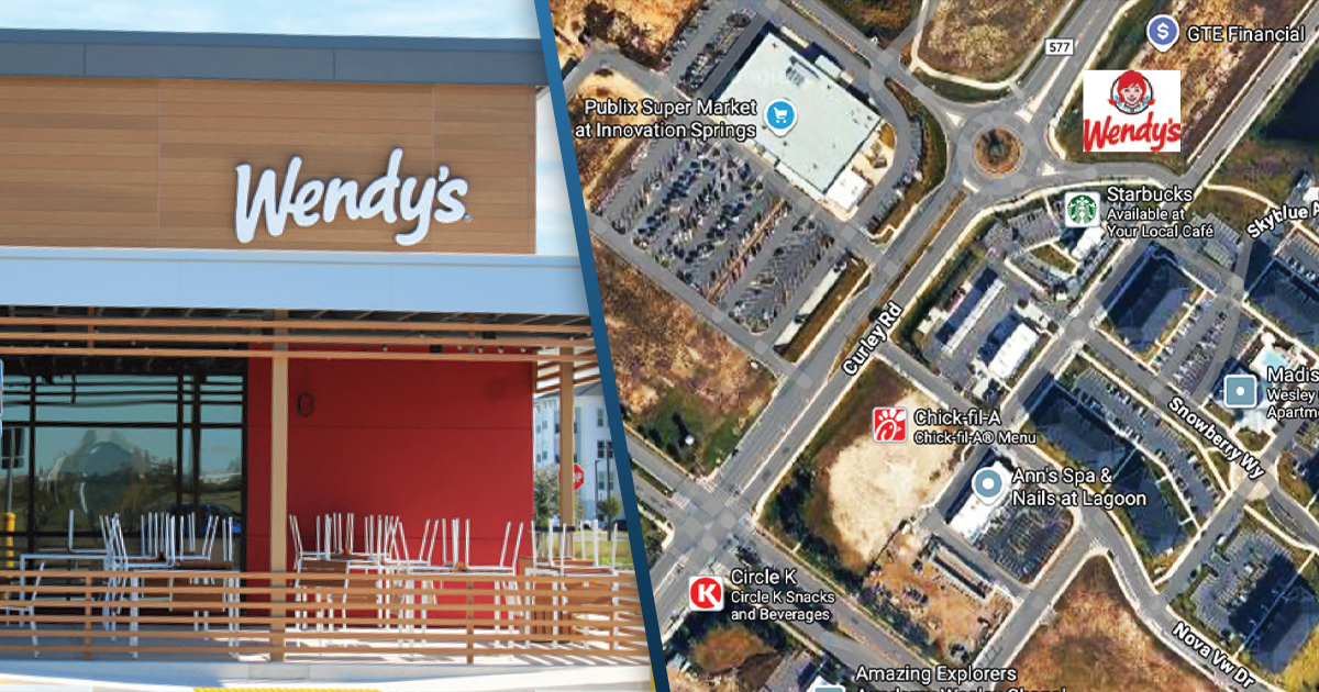 This location at 7803 Curley Rd. at Victory Crossing Dr. (near the Starbucks north of Overpass Rd.; see map) appeared to be ready to open (see photo) a couple of weeks ago, as the electronic menu boards were already operational. But, as of today, the new Wendy’s still looks no closer to opening. The restaurant, featuring a covered outdoor patio, is 2,239 sq. ft. and will have the usual Wendy’s fare, from breakfast items to burgers and chicken sandwiches to Frostys.