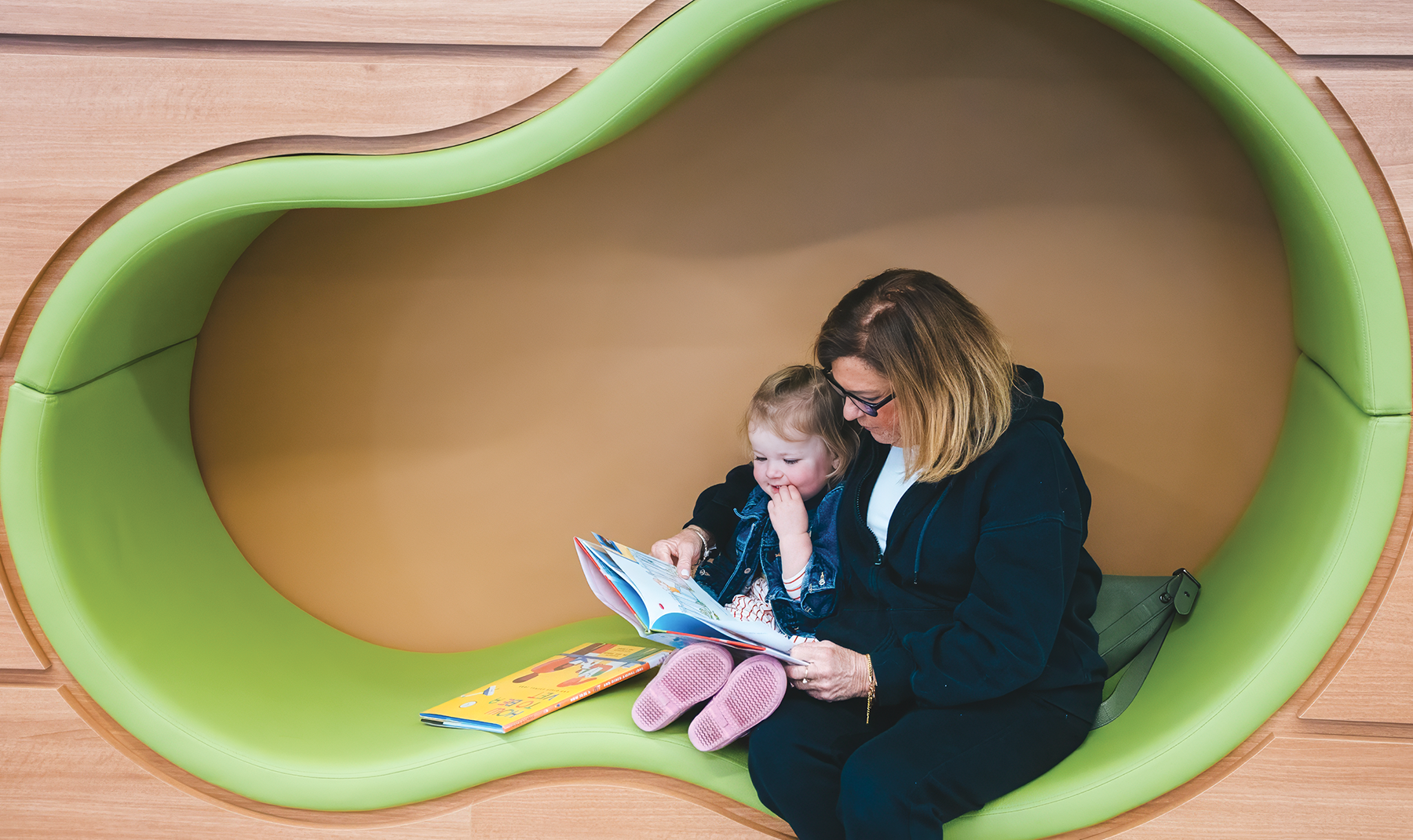 “It’s a little smaller than I expected,” said one young mom, “but this children’s reading area (photo, above and below left picture) is amazing!”