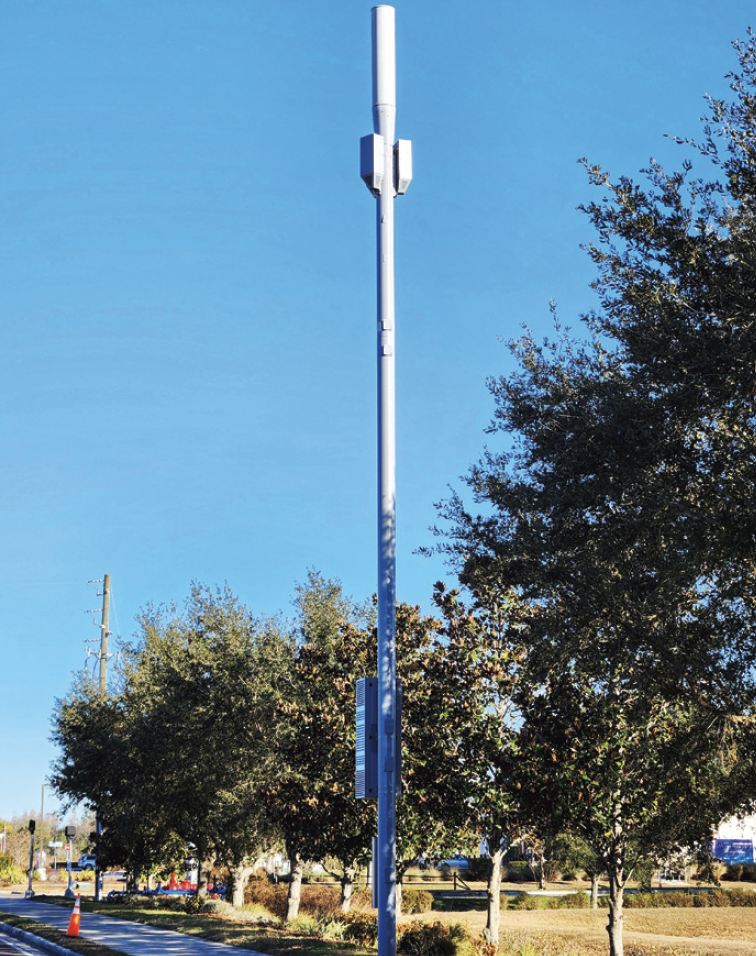 Because they’re allowed in the public right-of-ways, many people assume they’re traffic-related. In reality, these short roadside poles (above) are 5G “small cells” or microcells. They’re compact antennas, usually 10–30 feet tall, mounted on utility poles, streetlights, or even traffic signal structures.