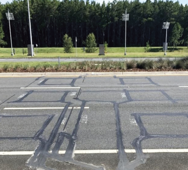 What about those rectangular or oval cuts (left) in the pavement near stop bars? Those are “inductive loops” — the oldest and still very reliable method of detecting vehicles at signals.
