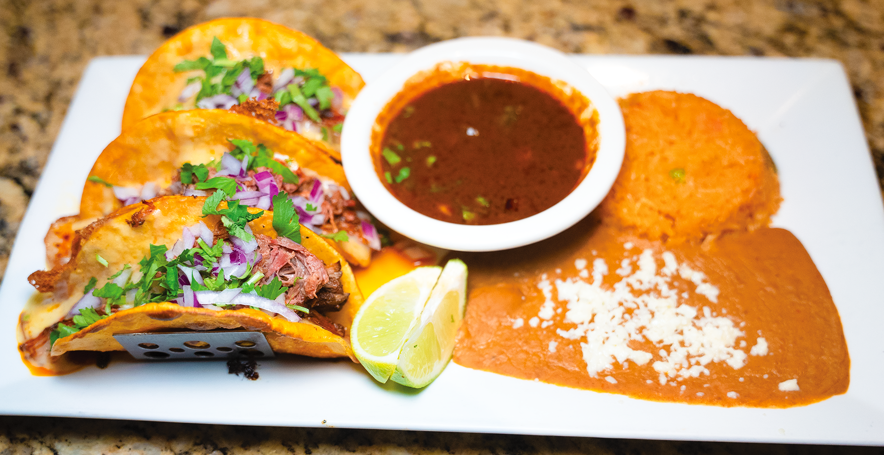Jannah’s favorite new dish was the trio of birria tacos, which feature tender shredded beef, onions and cilantro in obviously homemade corn tortillas shells and served with a savory beef broth consommĂ©.Â