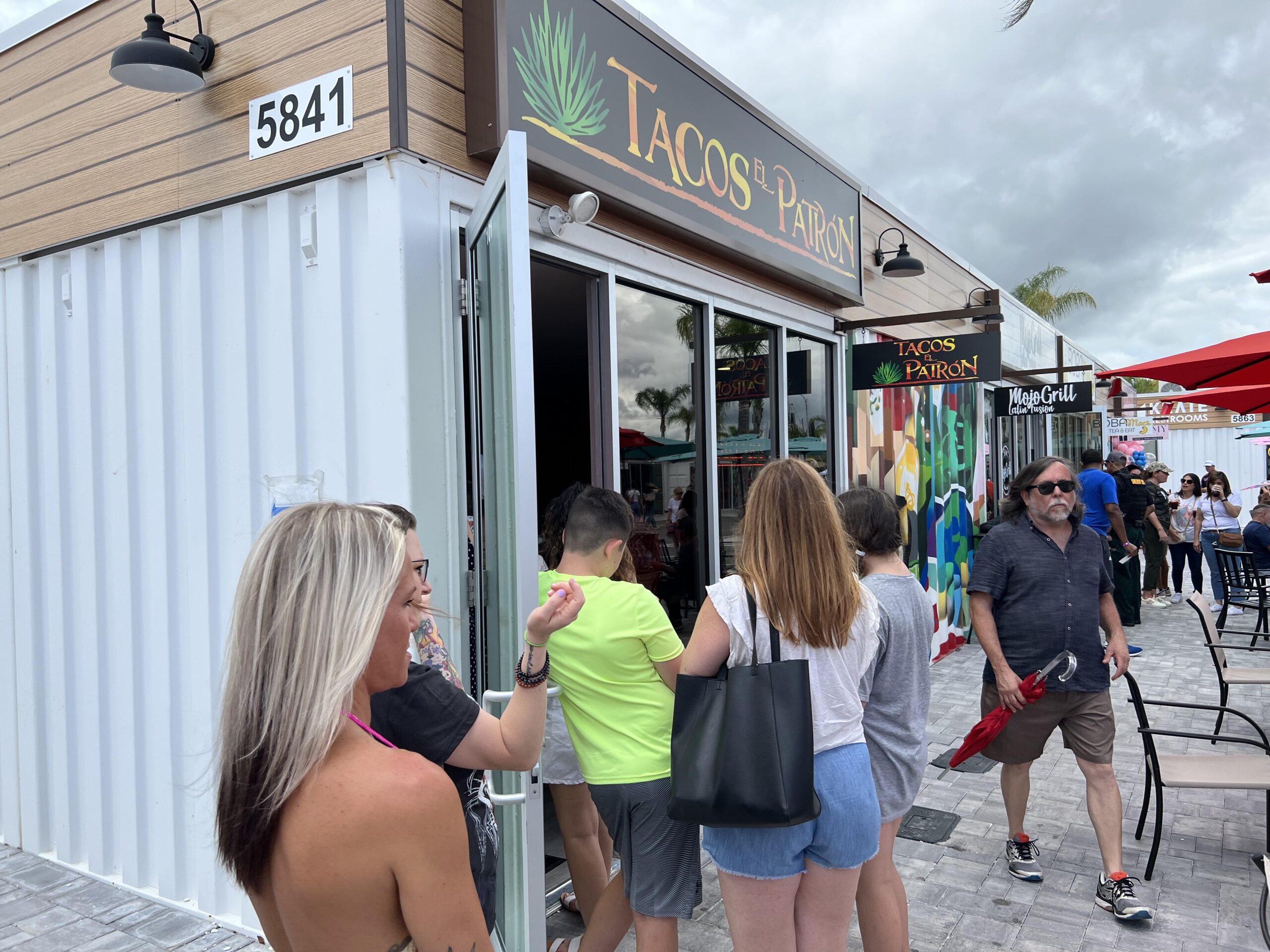 And, thankfully, since the whole shebang is opening during Florida’s hottest months, both the developer and the KRATE owners have started adding more outdoor seating with umbrellas (the tiki huts near the KRATE stage area are pretty cool-looking) for shade, since the air conditioned space inside even the larger repurposed shipping containers is still pretty limited.