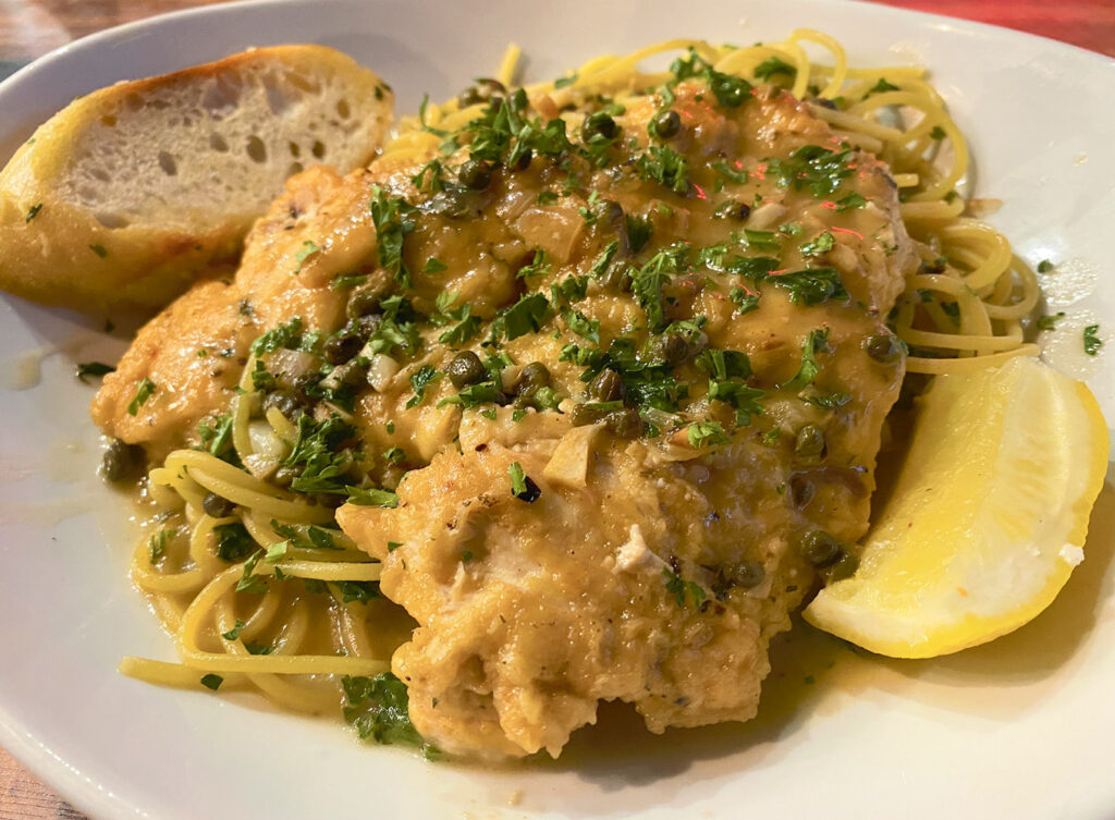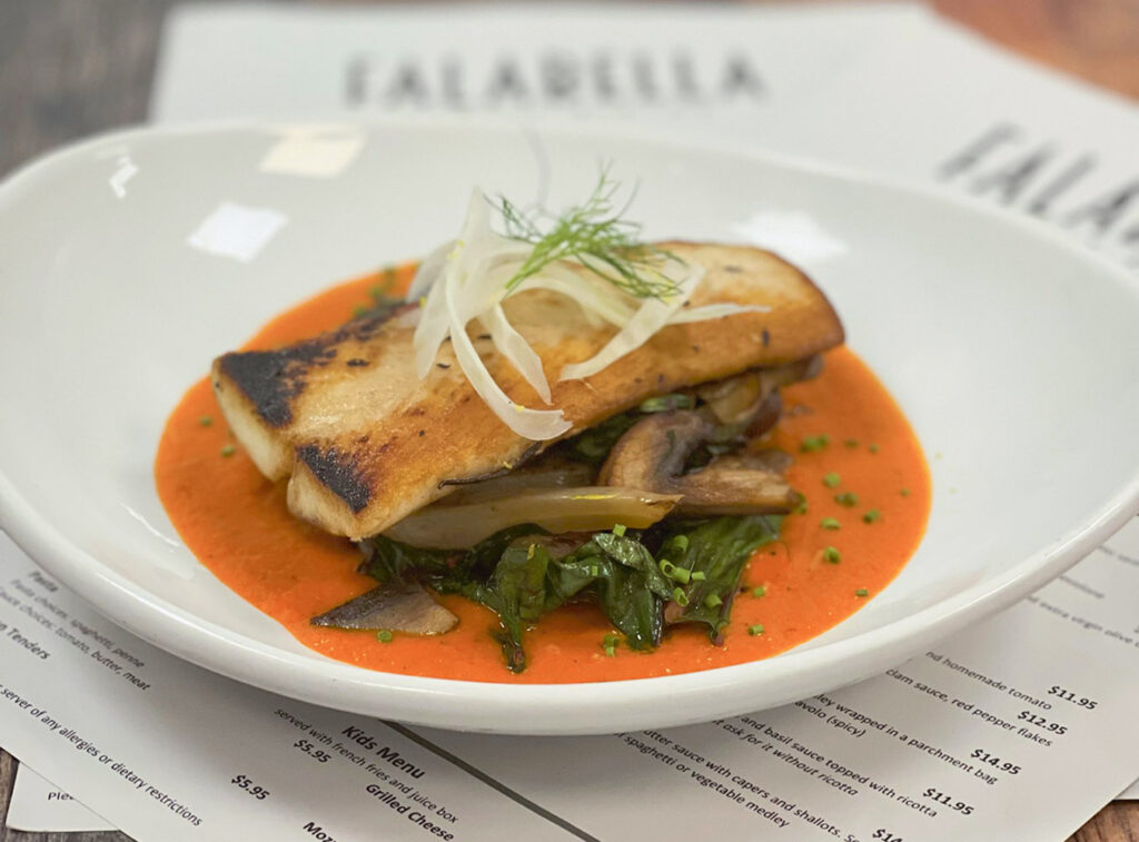 The fusion of Deep South and Italian is where it shines, however. Traditional Chicken Marsala is served over four-cheese grits and chicken sausage, the chicken fried chicken parmigiana is country-fried for a more rustic result, the BLT is served with fried green tomatoes, pork belly and pimento cheese and one of its most popular dishes, the bronzed salmon (bottom right), is highlighted by pickled raisins that bring it all together.