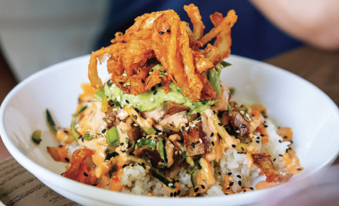 Moving up three spots with our readers this year, Cali continues to be a consistent performer in our annual Reader Survey, thanks to its high-quality fare, like the Hot & Crunchy bowl shown here (with seared ahi tuna). Cali also features hand-tossed pizzas, small plates like garlic & lime edamame and turmeric hummus, plus “chill” salads and more.