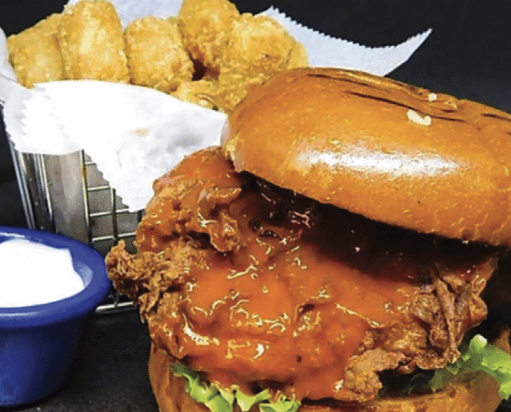 Our readers definitely seem to love Fat Rabbit’s food — like the Buffalo chicken sandwich shown here — and craft cocktails. Many readers rave about its wings, sliders and loaded fries and tater tots, too.