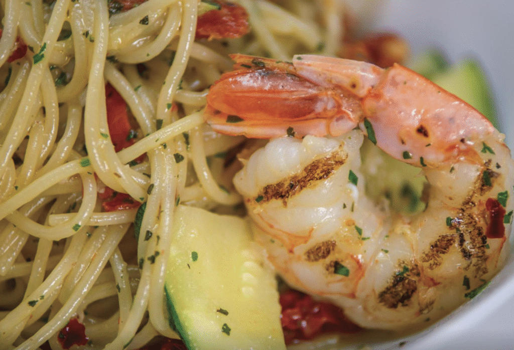 Our readers have placed Via Italia in their top-3 in New Tampa every year since it opened, so clearly the restaurant being sold by original owner Roberto Maganuco to Sanjay Patel in early 2024 hasn’t affected what our readers think of New Tampa’s largest selection of fresh pasta dishes, like the spaghetti con zucchine e gamberetti (shrimp) shown above.