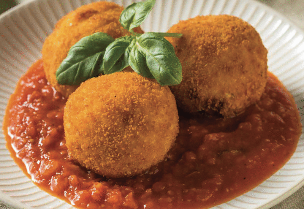 Via Italia also serves outstanding woodfired pizzas, salami and cheese platters, appetizers like four different kinds of bruschetta, two different capreses, polpetta della nonna (grandma’s meatballs), chicken wings and the suppli’ al telefono (Arborio rice croquettes with premium shredded mozzarella, hand-milled pomodoro sauce and cut basil) shown here.