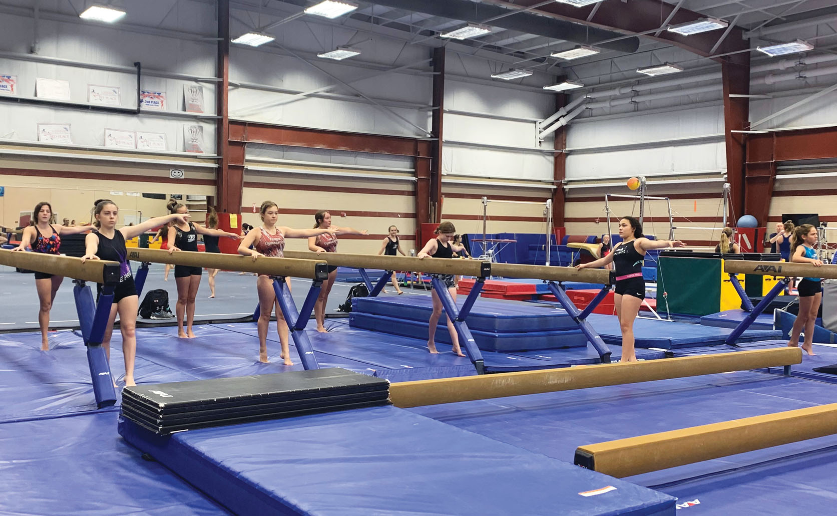 The tumbling mats are mopped between each group, coaches are wearing masks and hospital-grade organic anti-bacterial fogger is used every 28 days to keep the air as germ-free as possible.