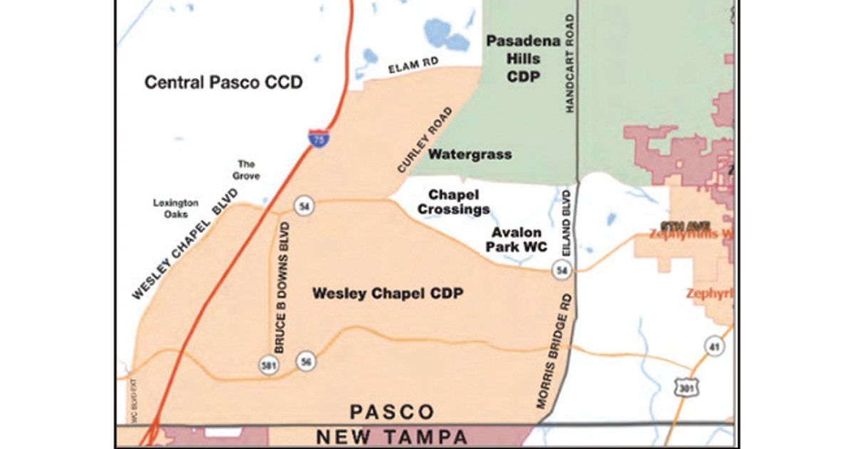 The Central Pasco Chamber wanted nothing with a Lutz zip code to be part of Wesley Chapel, while Hope wanted to use the U.S. Census Designated Place (CDP) known as Wesley Chapel (see map) to be the boundary.