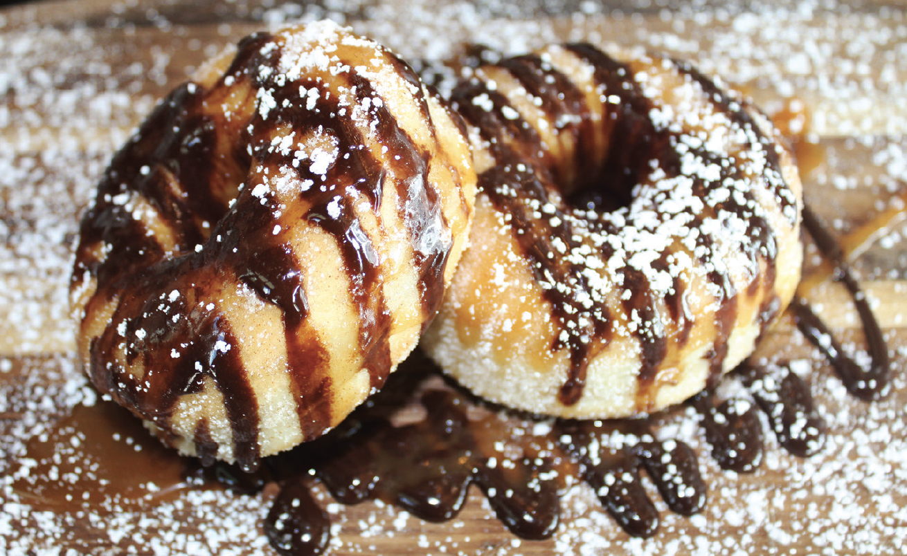 And, there are actually two desserts on the “Warmup” menu — a dulce de leche cinnamon roll with roasted pecans, and the P.R. donuts shown above, covered in sugar & cinnamon, chocolate sauce & caramel. Oh so decadent!