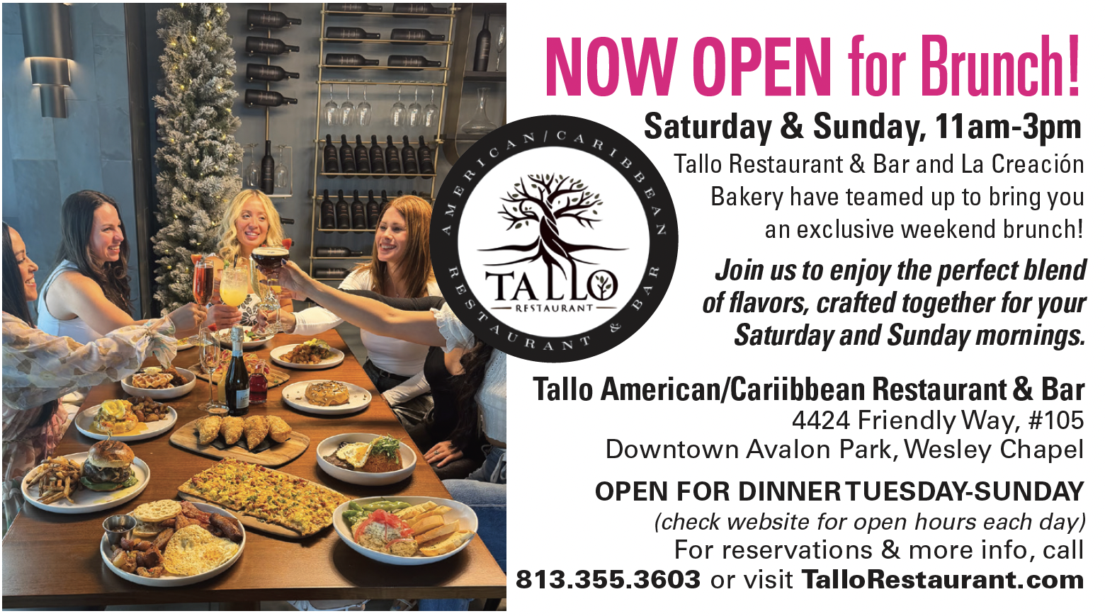 I’ve written before about Tallo’s amazing dinner options, but if you’re looking for a truly unique and beautiful brunch place with a full premium liquor bar, call (813) 355-3603 or visit TalloRestaurant.com for reservations and go check it out this weekend! Also, see the ad (below) on this page! — GN